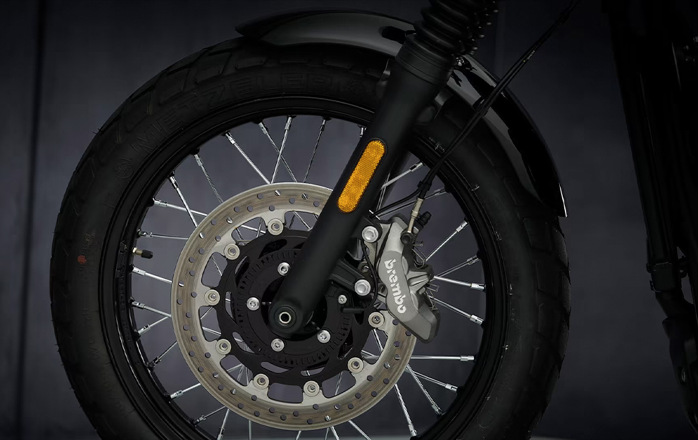 O ABS comutável pode ser desligado para refletir a finalidade dupla da motocicleta, e o controle de tração comutável gerencia o torque quando a tração está comprometida.