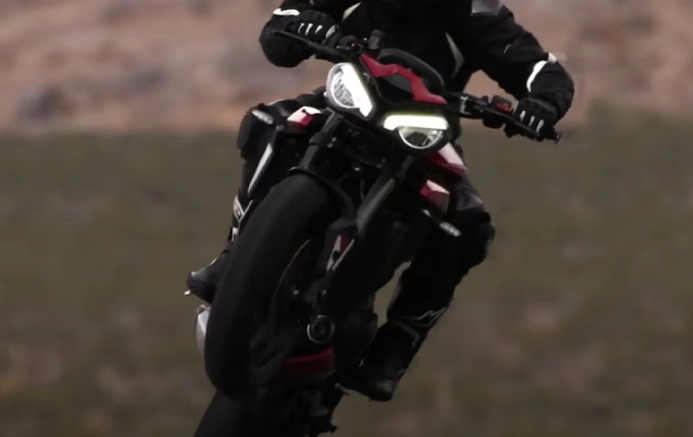 Graças às grandes atualizações, derivadas diretamente do programa de corridas Moto2™, o renomado motor 765 RS fornece uma potência líder da categoria de 130 cv, com maior torque com 80 Nm e também é mais responsiva e acelera mais rápido.